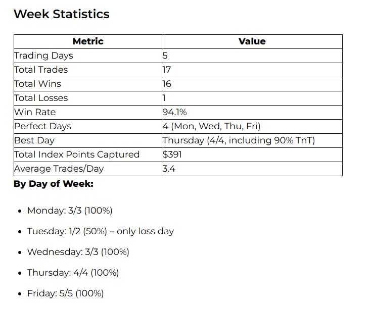This week delivered 16 wins from 17 trades. Not because we predicted the market. Not because we knew Microsoft would crash or Apple would surge. But because we: