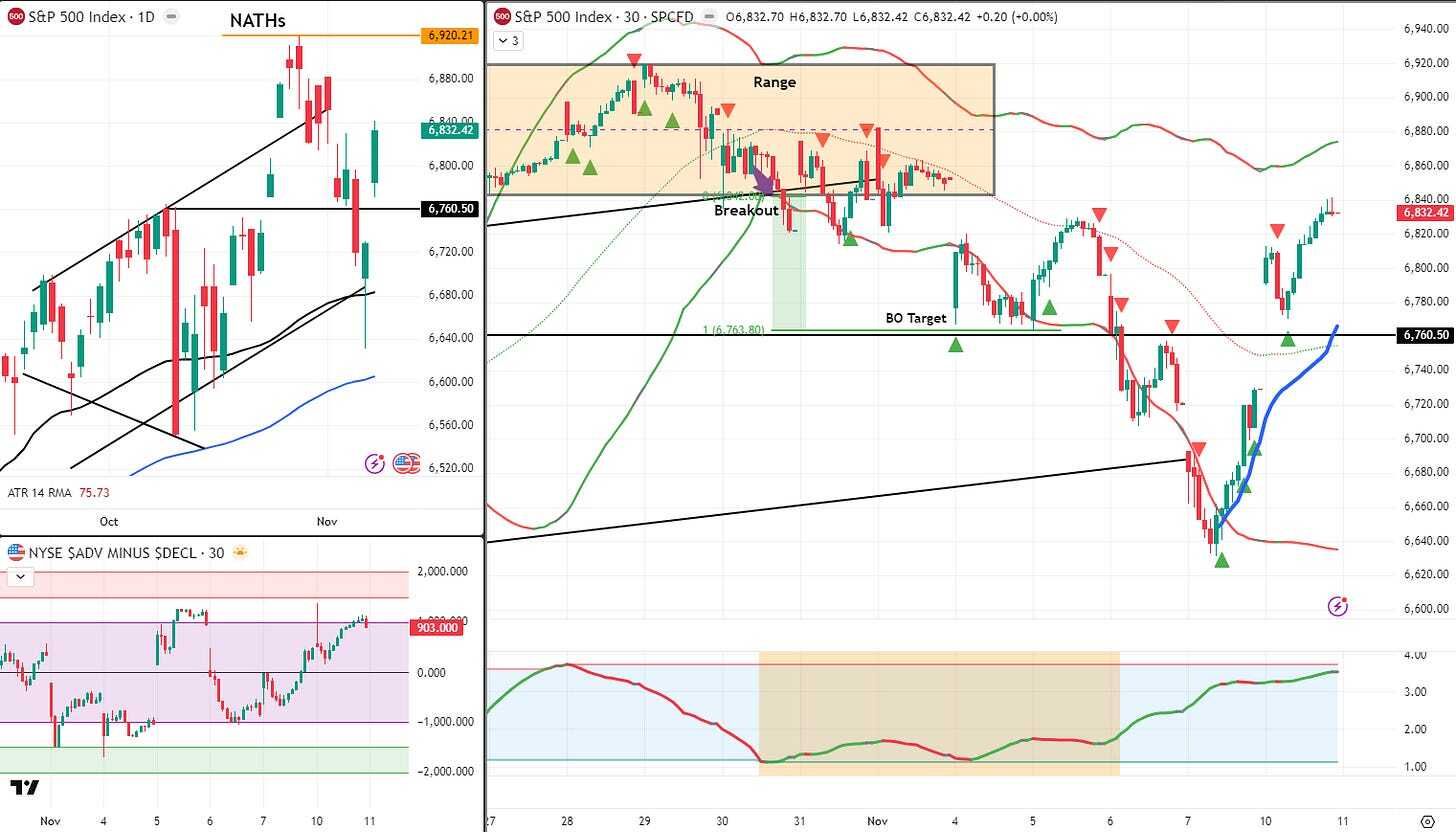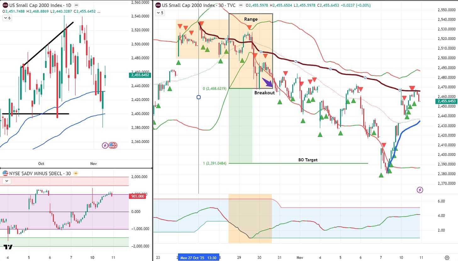 Grinding Sideways Despite 100+ ES Move. RTY Wobble Offering Clues. | SPX Market Briefing | 11 Nov 2025