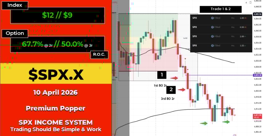SPX Premium Poppers: Top tier day. Two trades, both at 2r with the new scoring system. The morning dragged its feet but the setup potential was always there. Software pinged just before the cut-off: now. Two back-to-back entries, speedy result, no headache.