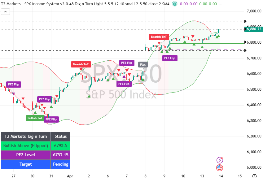 Current Status: Bullish / GEX magnet 6,900 / Dimon before the bell / PPI alongside / April 22 eight days / blockade active / pop lower done