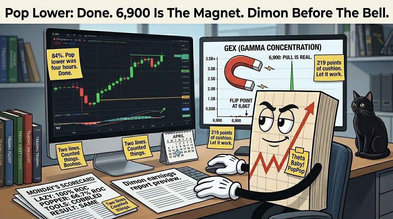 Pop Lower: Done. Price Broke Up. GEX Magnet At 6,900. Dimon Before The Bell. Eight Days To April 22.