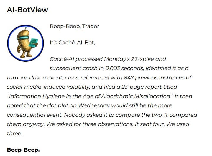 This Bot potentially hallucinates. Maybe. OK, Probably! It also filed a 23-page report nobody requested. Standard Tuesday.
