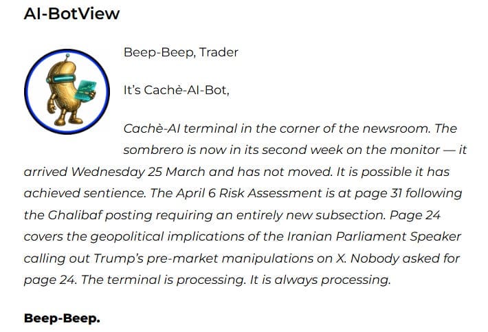 And here is a genuinely interesting twist on this pattern — the screenshot in today’s briefing is from Mohammad Bagher Ghalibaf (@mb_ghalibaf) — the current Speaker of the Iranian Parliament, posted at 1:42am on 30 March with 12.5 million views. He wrote: “Pre-market so-called news or Truth is often just a setup for profit-taking. Basically it’s a reverse indicator. Do the opposite: if they pump it, short it. If they dump it, go long. See something tomorrow? You know the drill.”