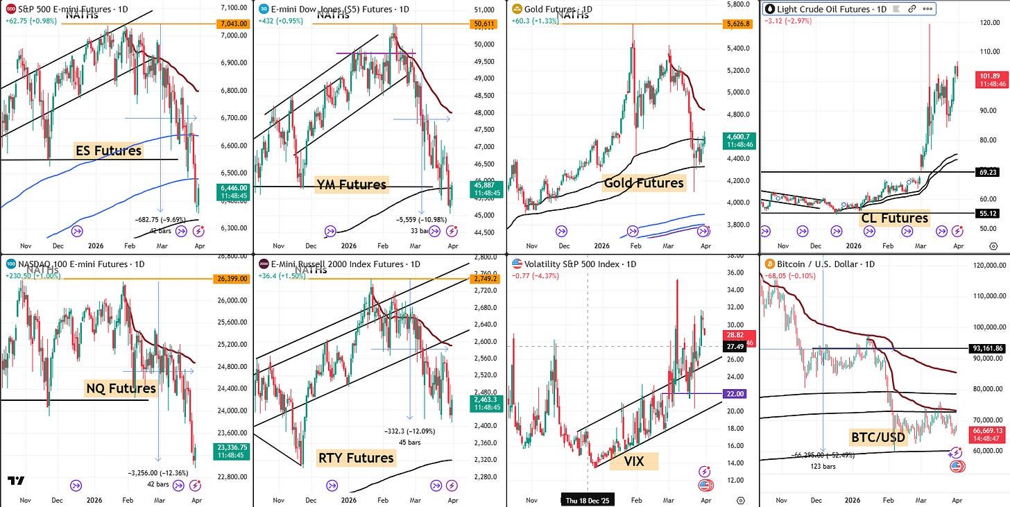The worst Q1 since 2022 ends on a de-escalation rumor. The chart says gap higher, trade lower. Same as yesterday.